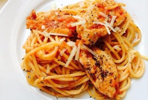 Любителям итальянской кухни посвящается! Сытный и очень вкусный ужин всего за полчаса! Вкуснейшие спагетти в томатном соусе с сочной и ароматной курицей!