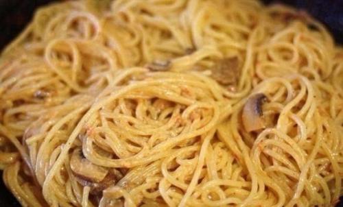 Добавляем грибы, все обжариваем, потом закрываем крышкой, на маленьком огне всё это тушим, чтобы дало сок.