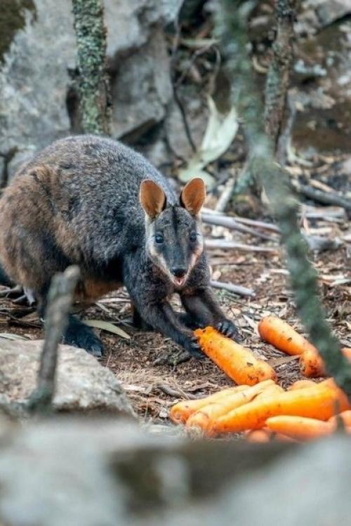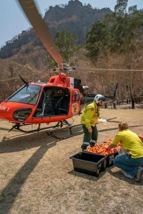 Спасатели в Австралии сбрасывают с вертолетов по несколько тон морковки, чтоб помочь животным.