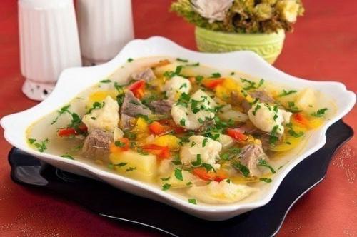 11. в бульон добавьте картофель, посолите. 12. Следом добавьте перец, варите пять минут. 13. Добавьте лука и моркови, доведите до кипения. 14. Чайной ложкой наберите немного теста и опустите в кипящий бульон. 15. добавьте перец, лавровый лист. Варите 5-7 минут. Приятного аппетита!