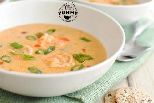 3. добавьте очищенные креветки, базилик и немного острого соуса по вкусу. Варите в течение 7-10 минут. Суп готов. Приятного аппетита!