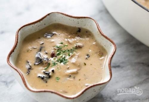 В конце влейте сливки, прогрейте немного и можно подавать суп с сушеными грибами к столу, по желанию дополнив свежей зеленью. Приятного аппетита!