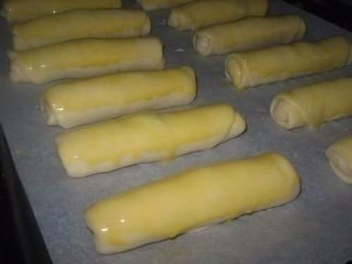 Аккуратно заворачиваем, формируя нашу "Сигару", выкладываем на противень швом вниз.