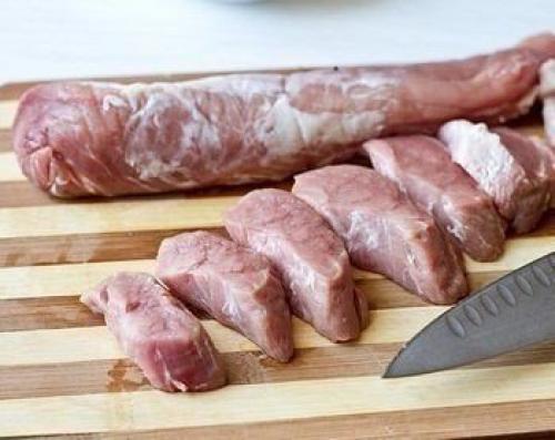 Вырезку зачищаем от жира и пленок, мы нарезаем на медальоны толщиной в 1, 5 см.
