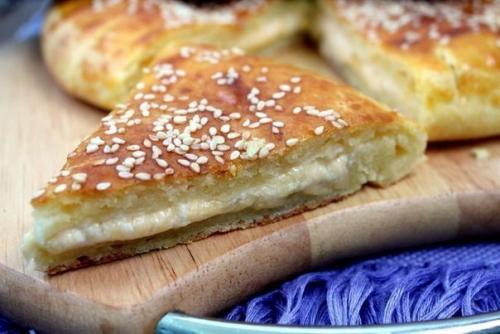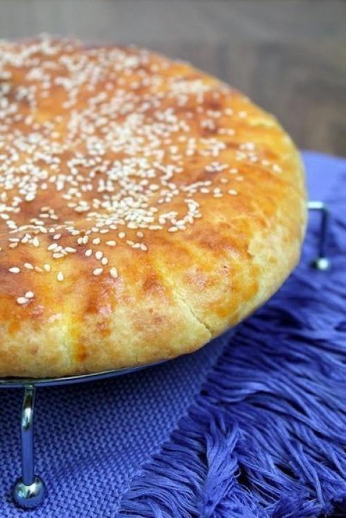 5. смазать лепешку яйцом, посыпать кунжутом и выпекать 20-30 мин. Выпеченную лепешку накрыть полотенцем и слегка остудить. Приятного аппетита!