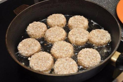3. запанировать сырники в овсяных хлопьях. В сковороде разогреть растительное масло и обжарить сырники с двух сторон до готовности.