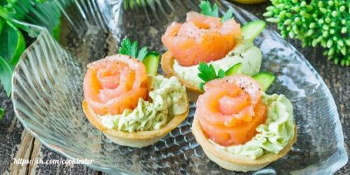 4. украсьте тарталетки небольшими кусочками огурца и листочками зелени.