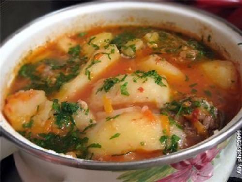 Заливаем водой (воды столько, насколько жидким или густым вы хотите супчик. Но учтите, что после остывания тефтели увеличатся и часть воды возьмут, чтобы уж слишком густо не получилось) и варим до готовности картофеля.