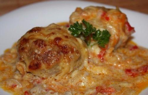 Посолить. Добавить сметану, перемешать, довести до кипения. В стакане воды размешать 1 ст. л. муки (чтобы не было комочков), влить в сметанный соус и довести до кипения (не загущивать. Посолить по надобности, поперчить. Форму для запекания выстелить фольгой. Сформировать тефтели и выложить в форму. Залить соусом. Запекать в духовке 30 минут при температуре 200 градусов. Затем вынуть форму и посыпать тефтели тертым сыром. Поставить готовиться еще на 15 минут. Тефтели готовы.