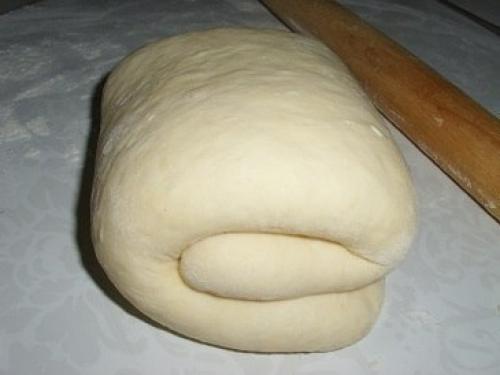 Тесто складываем в три слоя. Сначала складываем 1/3 часть с одного края, затем с другого. Затем еще раз в три слоя.