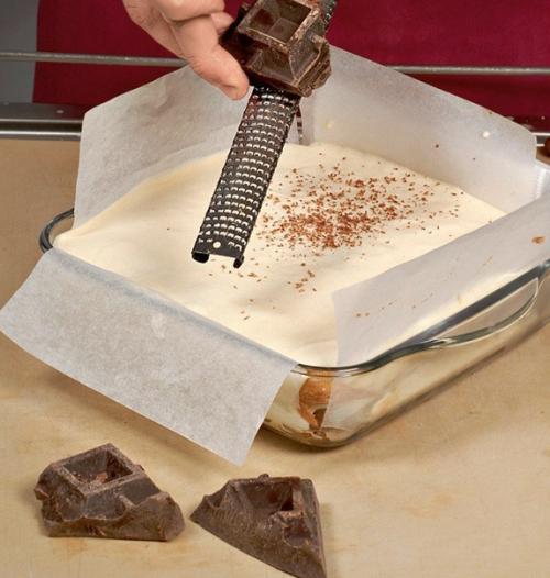 6. перед подачей натереть шоколад на мелкой терке и присыпать тирамису сверху. Можно также присыпать просеянным через ситечко какао - порошком. Приятного аппетита!