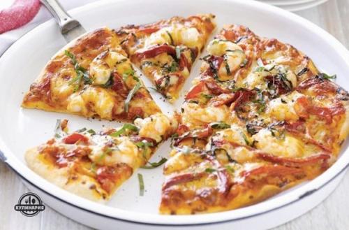 Теперь собственноручно сделанную лепешку необходимо смазать томатным соусом, и это должен быть не какой-нибудь кетчуп из магазина, а приготовленная своими руками паста из помидоров. Поверх нее выкладывают начинку. Продукты можно выбрать на свой вкус, главное, чтобы они сочетались между собой, а их общее количество не превышало 2-3 наименований. В том случае, если ингредиентов будет слишком много, потеряется баланс вкуса, к тому же, не исключено, что пицца не пропечется равномерно.