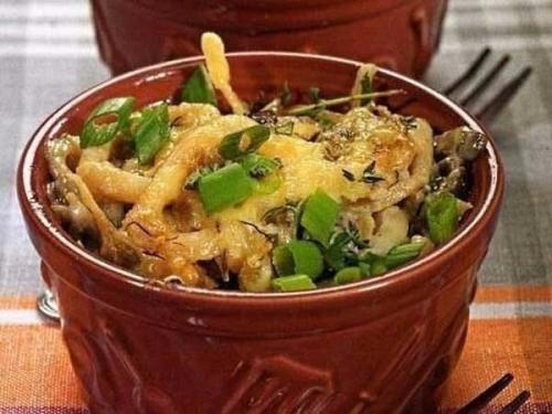 3. перловка со свининой и грибами в горшочках.