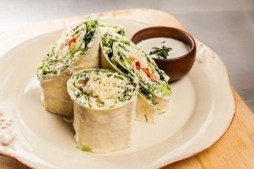 6. подаем рыбу прямо в лаваше. В качестве гарнира можно приготовить овощной салат.
