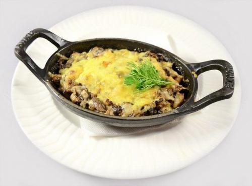 Лесные грибы хорошо промыть, почистить и отварить в кипящей воде в течение 20 минут. Затем, обжарить на растительном масле до подсушенного состояния. Баклажаны промыть, отрезать кончики и разрезать пополам. Вынуть мякоть. Затем посолить баклажаны и оставить на 20 минут, чтобы снять горечь. После чего промыть водой, просушить и смазать растительным маслом. Выложить половинки на противень и отправить в духовой шкаф на 15 минут, при температуре 220 градусов. В это время обжарить на сковороде мелко нарезанный лук и болгарский перец, порезанный на мелкие кубики. Добавить томаты и протушить еще 5 минут. В конце добавить мелко нарезанный чеснок и через 2 минуты снять с огня. Приготовленные овощи объединить с грибами. Полученной начинкой наполнить лодочки из баклажанов, сверху посыпать тертым сыром. Запечь в духовке в течение 12 минут.