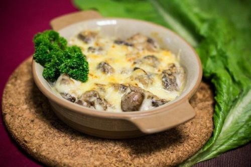 Промыть и очистить от лесного мусора маслята. Отварить их в кипящей воде в течение 20 минут. Растительное масло разогреть на сковороде и обжарить на нем мелко нашинкованный лук. Затем добавить к нему грибы. Тушить, пока из грибов не выпарится вся влага. Затем добавить сметану и мускатный орех, посолить. Тщательно все перемешать и протушить еще 2 минуты.