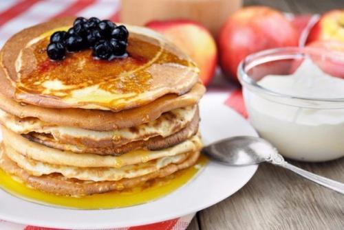 7. оладьи подавать с медом, вареньем, ягодным соусом или сметаной. Вкусные они и просто так, совсем не опадают, а на второй день остаются такими же мягкими и пышными.