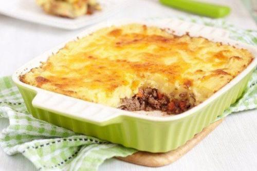 6. смазать форму для выпекания сливочным маслом. Выложить фарш, сверху картофельное пюре.