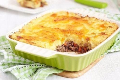 6. смазать форму для выпекания сливочным маслом. Выложить фарш, сверху картофельное пюре.