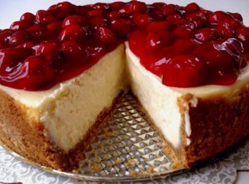3. тесто равномерно распределяем по форме для запекания, ставим его на 20 минут в духовку при температуре 180 градусов. На готовый корж выкладываем вишню без сока. Все убираем в холодильник. Когда вишневый сок оступился но еще жидкий, заливаем им ягоды и оставляем на холоде до застывания.