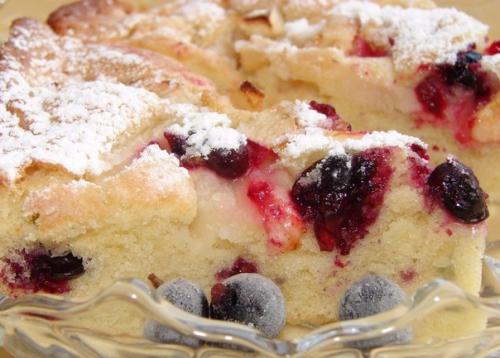200 г. масла, 4-5 яйца, 1 ст. Сахара, 3 ст. Муки, 1 ч. л. разрыхлителя, ванилин, 300-400 г. вишни (я беру заморозку, можно взять другие ягоды), сахарная пудра (по желанию.
