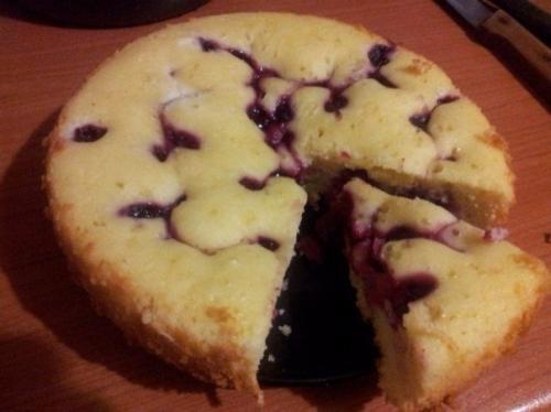 Яйцо на белки и желтки разделить. Белки в устойчивую пену взбить. Желтки с сахаром растереть. Взбить белки с желтками. Добавит кефир и масло - взбить. Смешать муку, манку, разрыхлитель, соду и соль. В жидкую смесь просеять. Спокойно перемешать до однородной консистенции. Обратите внимание на консистенцию теста! Кефир у всех разной густоты и мука разной влажности, поэтому тесто не должно быть жидким и тякучим, и не должно быть плотным. Лучшая консистенция густой сметаны. Всыпать ягоды и аккуратно перемешать. Выложить в смазанную маслом форму мультиварки. Закрыть крышку и выпекать 60 минут в режиме "Выпечка" или "запеканка". Кекс готов!
