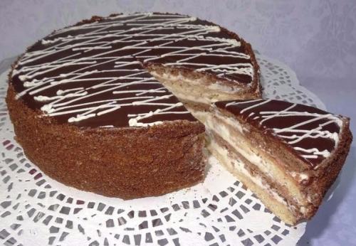 Крем охладить до чуть теплой температуры и взбить блендером. 11. Залить кремом корж и положить вторую часть бисквита, чуть прижав. Поставить в холодильник. 12. Приступим к шоколадному крему.