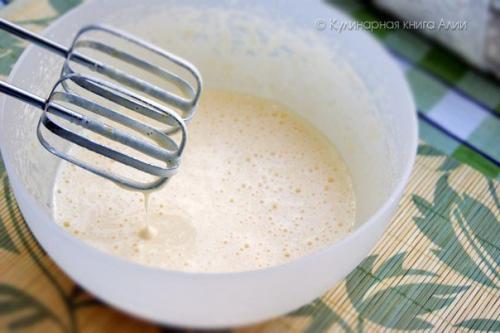 Мука бывает разная, иногда нужно остановиться немного раньше - на 4-х или 4, 5 ложках муки. В том случае, если тесто получилось гуще чем на фото - разбавьте его молоком, сметаной или сливками до нужной консистенции.