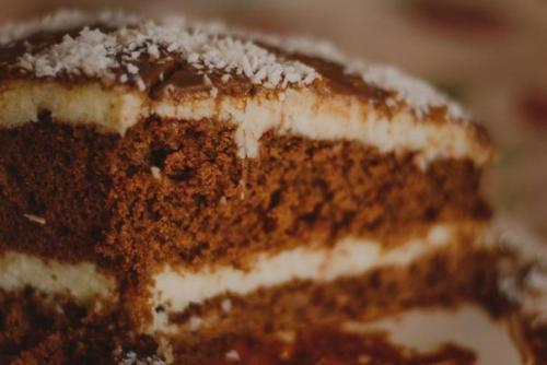 16. накрыть вторым коржом. 17. Смазать оставшимся кремом, так же разровнять верх и бока. 18. Для глазури растопить шоколад, добавить масло, перемешать до однородности и смазать верх торта. 19. украсить кокосовой стружкой и поставить в холодильник как минимум на ночь. Приятного аппетита!