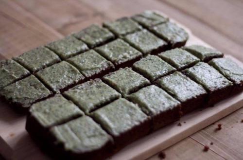 13. смазываем кремом верх торта. 14. Режем на квадраты примерно 5 на 5 см.