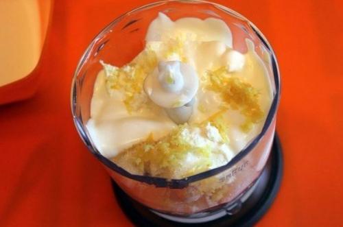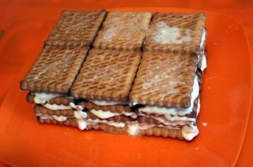 Для приготовления крема соедините творог, сметану, сахар, сливочное масло и цедру лимона. Тщательно перемешайте или взбейте в блендере до получения однородной массы. Каждое печенье окуните в молоко и выложите ровным слоем 6 штук. Положите по столовой ложке творожного крема. Повторите ещё 3 раза слои из печенья и крема. Покройте верх и бока торта творожным кремом. Украсьте торт из печенья и творога фруктами или ягодами, например, клубникой из компота, лимонной цедрой, листочками базилика. Приятного аппетита!