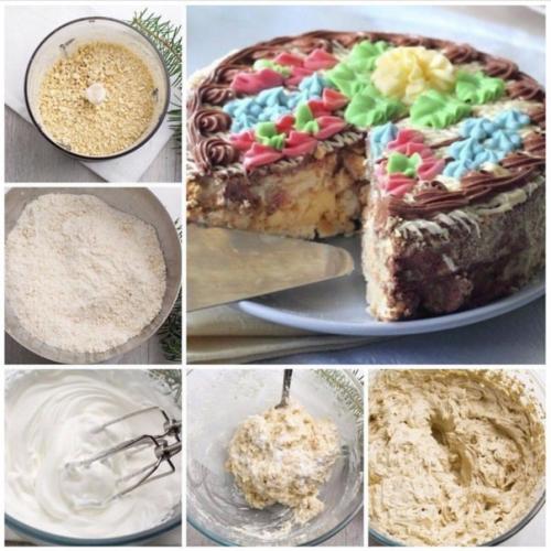 Шаг 2. для теста: орехи измельчить до состояния крупной крошки. Смешать с 0, 75 стак. Сахара, ванильным сахаром и мукой.