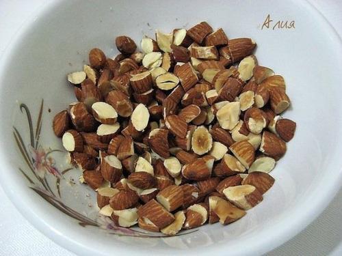 Орехи порезать крупно.