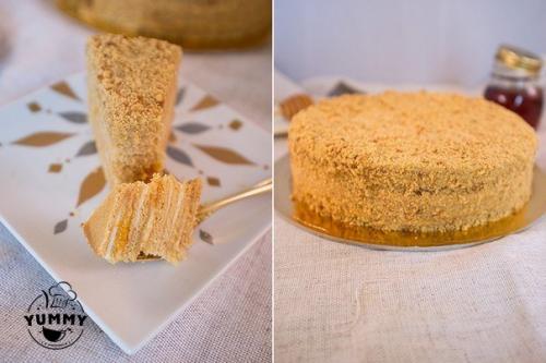 4. я еще чередовала их: на один только крем, на следующий крем 2 ч л абрикосового джема. Последний верхний корж должен быть только со сметанным кремом, смазать также и бока. Обрезки от теста сложить в блендер и измельчить в крошку. Обсыпать ей бока и верх торта. Дать ему постоять при комнатной температуре 2-3 часа, а затем убрать в холодильник на ночь. За это время он хорошо пропитается. Подавать охлажденным. Приятного аппетита!