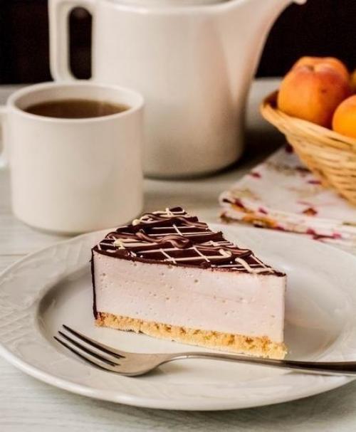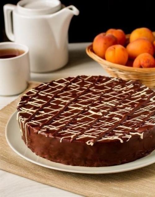 Ставим в холодильник, чтобы шоколад застыл. Дальше можно декорировать верх торта все тем же шоколадом через корнетик. Подаем. Приятного аппетита!