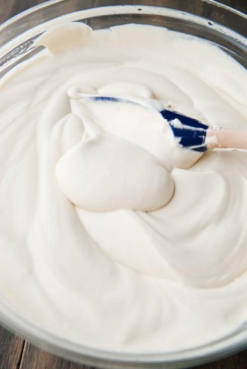 Взбить сливки до пиков. И потом аккуратно в 2 приёма добавить их в крем, перемешивая лопаточкой.