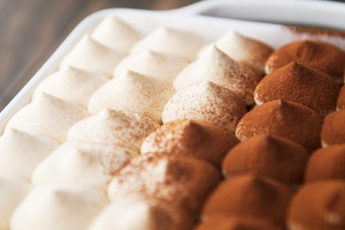 Выложить 1 часть крема маскарпоне, разровнять. Присыпать горьким шоколадом.