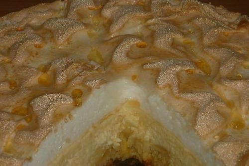 Вынуть тесто с холодильника и выложить в разъемнуюформу (у меня форма диаметром 26 см. Наверх выложить начинку. Выпекать притемпературе 180 с 30-40 минут. Потом вынуть торт и наверх выложить суфле. Суфлеготовиться путем взбивания белков и сахара до крепких "Пиков" и печь еще 15-25 мин до золотистого цвета. Вынуть и дать хорошенько остыть. Когда торт остынет, на нем появятся капельки, так называемые слезы.