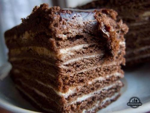 Промазать кремом, придавливая коржики. Оставить на столе на 2 часа при комнатной температуре (только в этом случае коржики пропитаются кремом и станут мягкими, потом полить либо шоколадной помадкой, либо растопленным шоколадом и поместить в холодильник. Приятного аппетита!