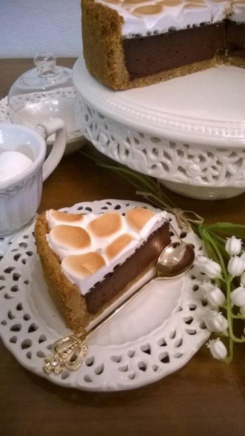 10. при 180 гр. Запекать под верхнем грилем 1-2 минуты, следите, чтобы зефир немного подрумянился, не более. Получаем вот такой красивый рисунок. Наш торт готов. Торт можно и горячим кушать. Приятного аппетита!