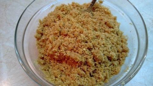 1. печенье измельчить в блендере, добавить растопленное масло и перемешать до состояния однородной массы.
