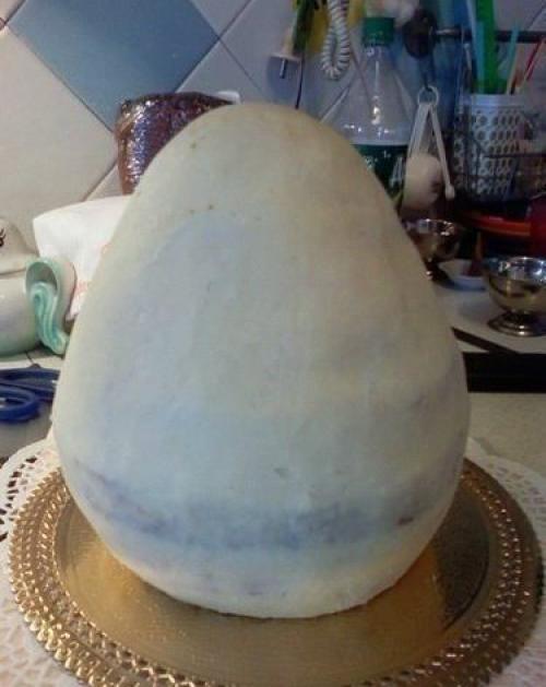 4. раскатываем мастику. Важно: при раскатке центр оставляем более толстым слоем, чтобы при накрытии торта, на верхушке не образовалась дыра. Излишки по - низу обрезаем.