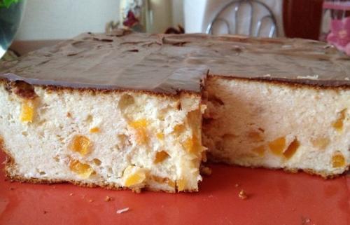 В творожно - желтковую смесь добавить манку и сухофрукты ( у меня курага), аккуратно ввести белки и разрыхлитель.