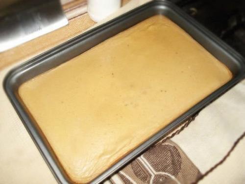 3. получившуюся массу вылить в форму. Поставить в духовку. Запекать при температуре 150\xB0с 1 час 10 минут. Даем остыть. Помещаем запеканку в холодильник на ночь.