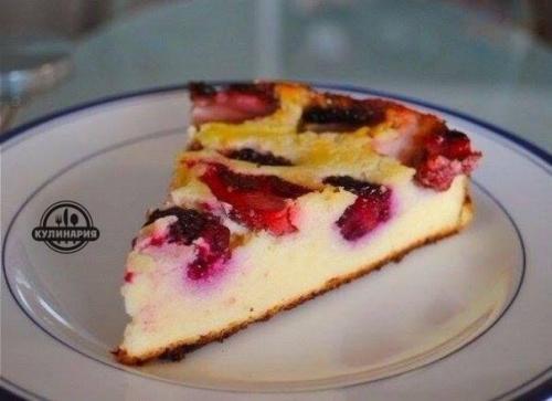 Обезжиренный творог смешиваем с ягодами, яйцом, содой и двумя столовыми ложками манки.