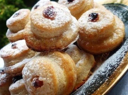 1. в творог натереть на крупной терке сливочное масло, добавить муку и быстро замесить тесто, завернуть и в холод на 2 часа.