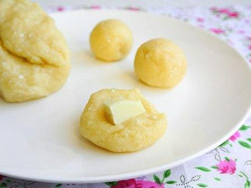 7. отщипнув от теста небольшой кусок, вложить в него кусочек шоколада, скатать шарик, чтобы шоколад оказался внутри.