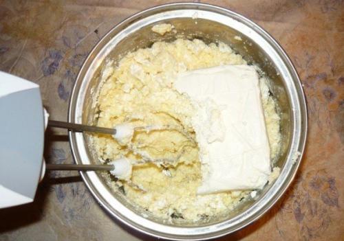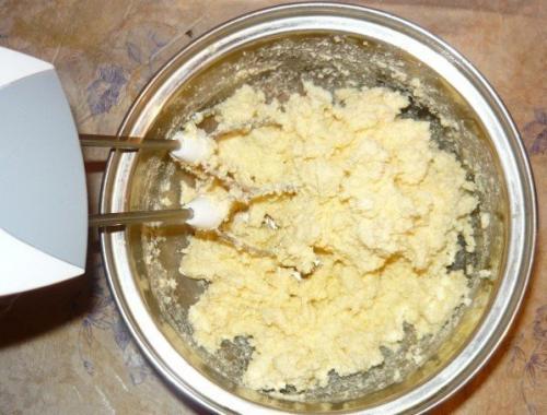 6. небольшими порциями всыпать муку, не прекращая перемешивать. Должно получиться очень эластичное тесто консистенции густой сметаны.
