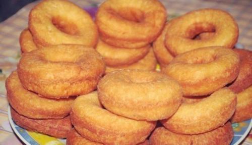 . Дальше делим тесто на три части и раскатываем каждую толщиной примерно 0, 5-0, 7 см. Большим стаканом режем на круги, а маленькой крышечкой вырезаем в каждом круге ещё кружок. Получается около 25 шт. бубликов или кружочков. Разогреваем масло 3 см высотой на умеренном огне - проверять готовность масла бросанием малюсенького кусочка теста, если вокруг кусочка начинают собираться пузырьки, температура масла оптимальная. Обжаривается очень быстро - до золотистого цвета. Потом жарим кружочки - они превращаются в шарики. Выкладываем готовые бублики на салфетку, чтоб впитать лишнее масло. По желанию можно посыпать сахарной пудрой. Приятного вам аппетита!