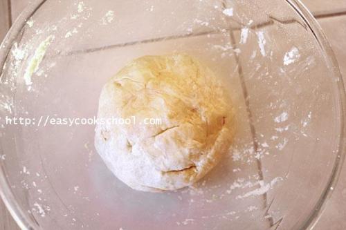 - Теперь добавьте туда же просеянную муку, разрыхлитель и половинку пакетика ванилина. Замесите эластичное, мягкое тесто, оно должно отлипать от рук. Поставьте тесто в холодильник на 30 минут, не забудьте его накрыть.